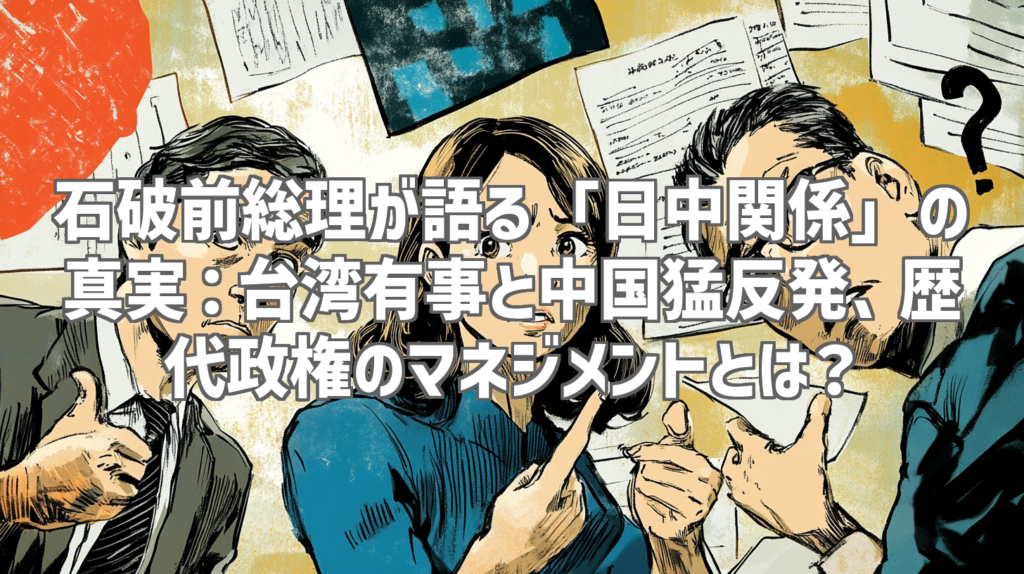 石破前総理が語る「日中関係」の真実:台湾有事と中国猛反発、歴代政権のマネジメントとは? 国際情勢が日々刻々と変化する現代において、日本と隣国である中国との関係は、私たち国民にとって最も重要な関心事の一つと言えるでしょう。特に「台湾有事」と... -