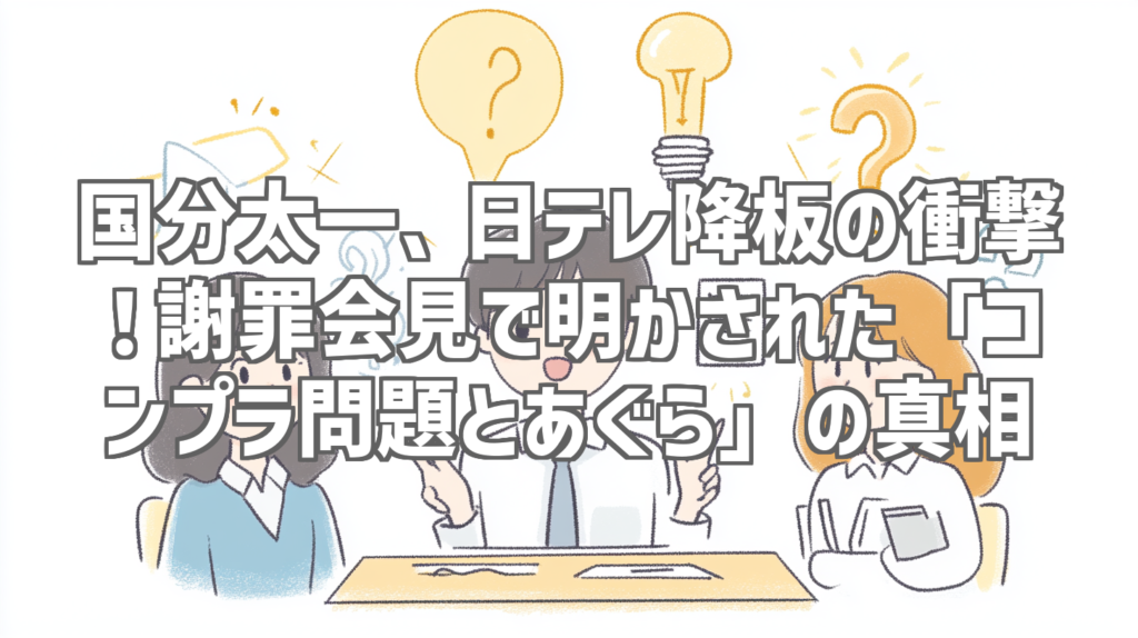 国分太一、日テレ降板の衝撃!謝罪会見で明かされた「コンプラ問題とあぐら」の真相 人気タレントの国分太一さんが日本テレビの番組を降板したというニュースは、多くの人にとって大きな衝撃だったのではないでしょうか。そして、その原因が「コンプライア...