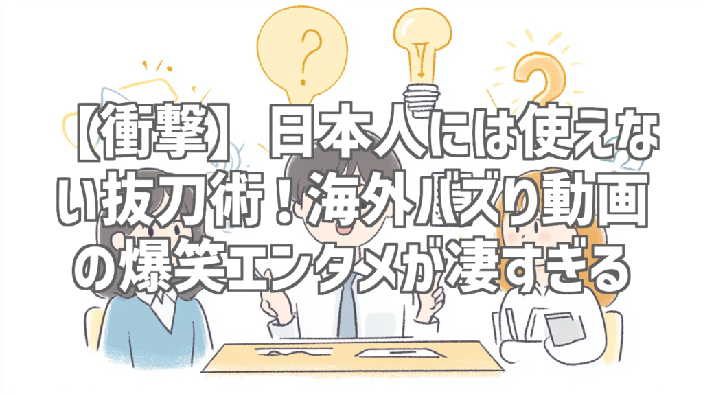 【衝撃】日本人には使えない抜刀術!海外バズり動画の爆笑エンタメが凄すぎる 皆さん、こんにちは!YouTubeの海を日々泳ぎ回っている私ですが、今回はまさに度肝を抜かれるような衝撃のエンタメ動画を発見してしまいました!その名も「日本人には使えない... -