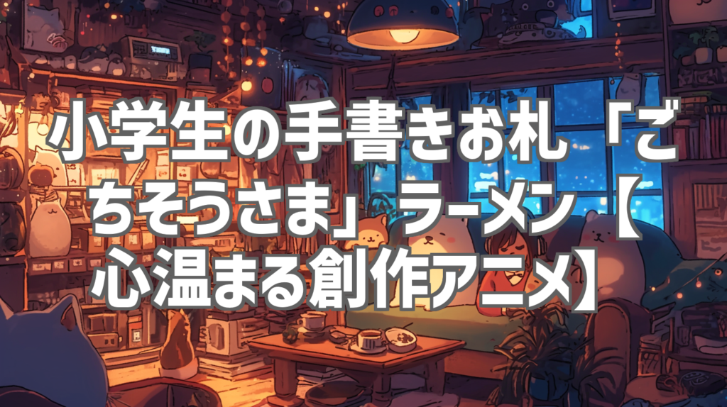 小学生の手書きお札「ごちそうさま」ラーメン【心温まる創作アニメ】 皆さん、こんにちは!人気YouTubeレビューブロガーの[あなたの名前/ブログ名]です!今日のレビューは、SNSで「涙腺崩壊」「心が洗われる」と話題沸騰中のショートアニメをご紹介します... -