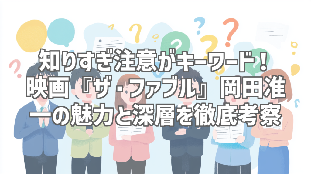 知りすぎ注意がキーワード!映画『ザ・ファブル』岡田准一の魅力と深層を徹底考察 皆さん、こんにちは!人気YouTubeレビューブロガーの[あなたの名前]です。今日は、巷で話題沸騰中の映画『ザ・ファブル』、特に主演・岡田准一さんの魅力に迫るYouTube動画... -