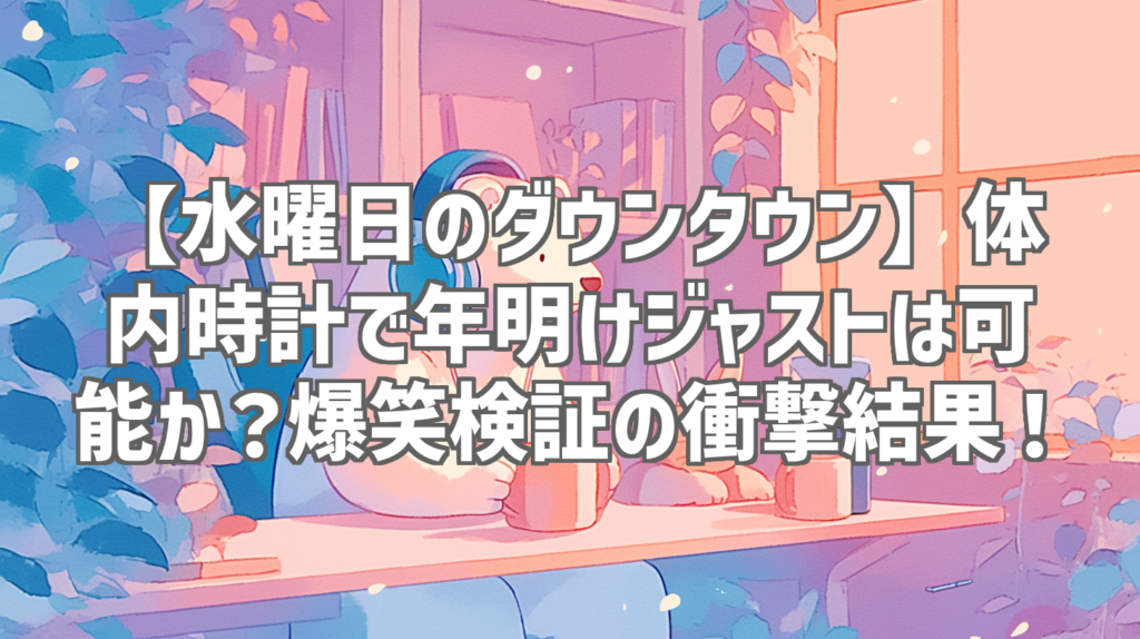 【水曜日のダウンタウン】体内時計で年明けジャストは可能か?爆笑検証の衝撃結果! みんな、新年を迎える瞬間って、どんな風に過ごしてる?カウントダウンして「ハッピーニューイヤー!」って叫んだり、テレビの前でジャストの瞬間を待ったり、人それぞれ...