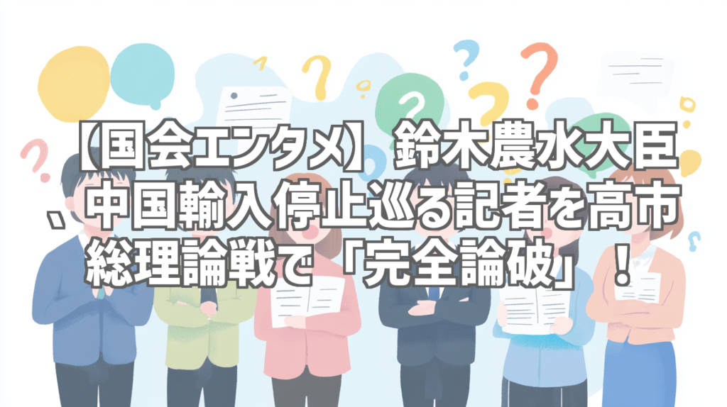 【国会エンタメ】鈴木農水大臣、中国輸入停止巡る記者を高市総理論戦で「完全論破」!