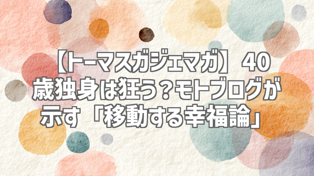 【トーマスガジェマガ】40歳独身は狂う?モトブログが示す「移動する幸福論」