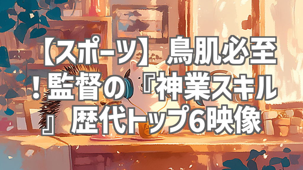 【スポーツ】鳥肌必至!監督の『神業スキル』歴代トップ6映像 皆さん、こんにちは!YouTubeレビューブロガーの[あなたのチャンネル名]です。今日は、スポーツ好きなら誰もが「え、マジで!?」と声を上げてしまうような、とんでもない動画を見つけてきまし... -