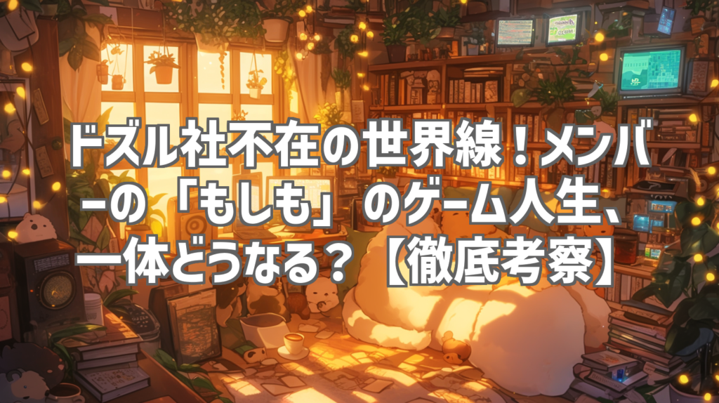 ドズル社不在の世界線!メンバーの「もしも」のゲーム人生、一体どうなる?【徹底考察】 人気ゲーム実況グループ「ドズル社」の動画は、いつも僕たちに笑顔と驚きを届けてくれますよね。でも、もしもドズル社という存在が最初からなかったら、あの個性豊か... -