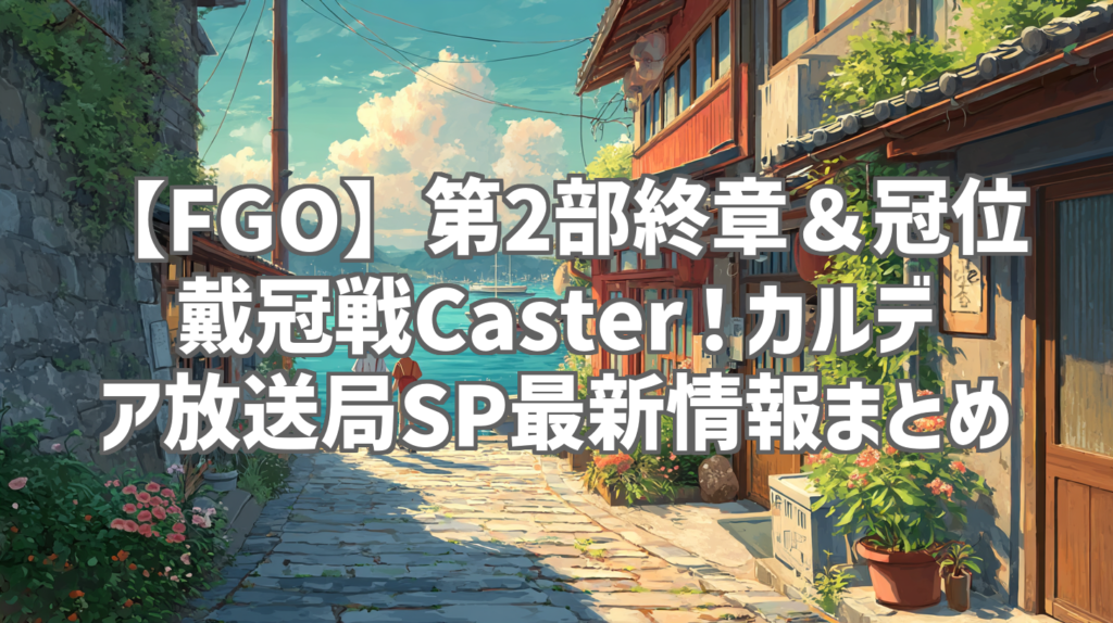 【FGO】第2部終章&冠位戴冠戦Caster!カルデア放送局SP最新情報まとめ FGOマスターの皆さん、おはこんばんちは!YouTubeレビューブロガーの[あなたのブロガー名]です! いやー、来ましたね!ついにあの瞬間が!先日放送された「Fate/Grand Order カルデア... -
