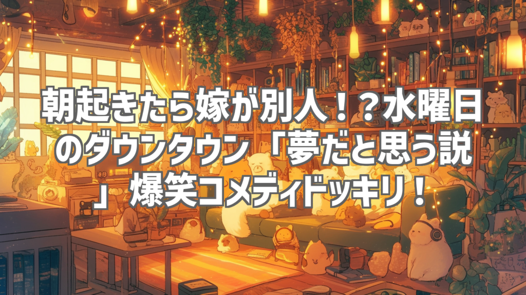朝起きたら嫁が別人!?水曜日のダウンタウン「夢だと思う説」爆笑コメディドッキリ! 「朝起きたら嫁が別人になっていたら…」想像しただけでも背筋が凍るようなシチュエーションですよね。しかし、もしそれが、あの国民的カルト番組「水曜日のダウンタウ... -