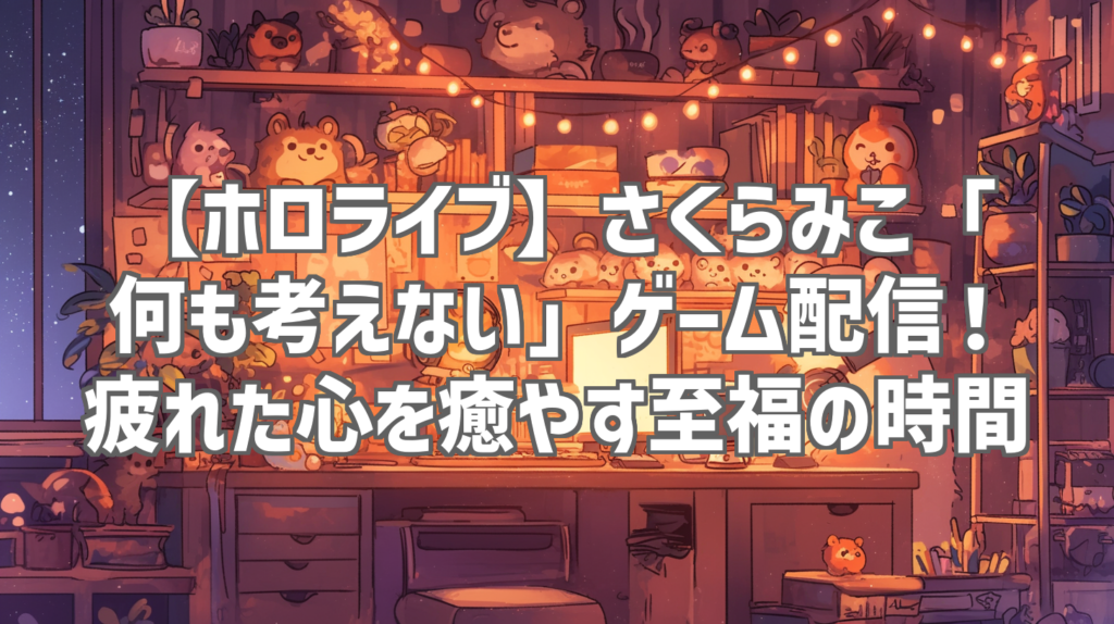 【ホロライブ】さくらみこ「何も考えない」ゲーム配信!疲れた心を癒やす至福の時間 現代社会を生きる私たちにとって、日々押し寄せる情報やタスクに追われ、心身ともに疲弊してしまうことは少なくありません。そんな時、心の底から求めているのは、きっと... -