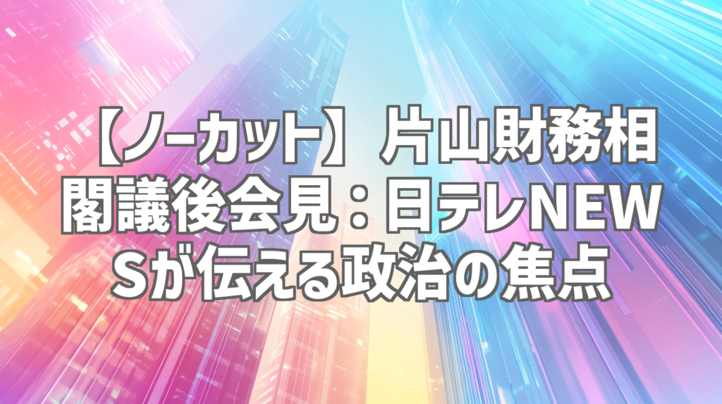 【ノーカット】片山財務相 閣議後会見:日テレNEWSが伝える政治の焦点 皆さん、こんにちは!YouTubeレビューブロガーの[あなたのブロガー名]です。今回は、政治や経済に興味がある皆さんにとって見逃せない、日テレNEWSさんの動画を徹底レビューしていきま...
