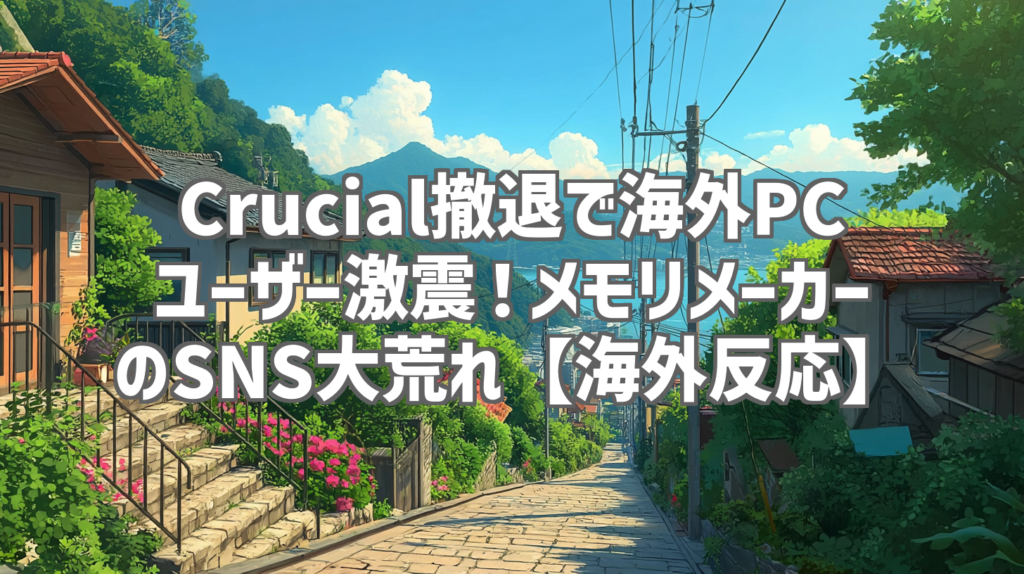 Crucial撤退で海外PCユーザー激震!メモリメーカーのSNS大荒れ【海外反応】 皆さん、こんにちは!PCパーツ沼にどっぷり浸かっているそこのあなた、今日のニュースは心臓に悪いかもしれません。あの信頼と実績のメモリメーカー「Crucial」が、まさかの海外P... -