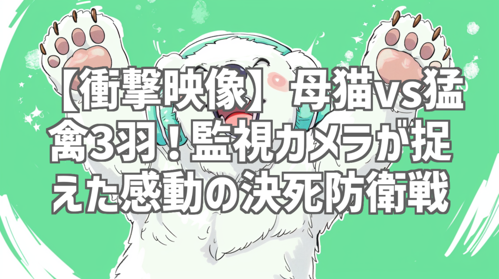 【衝撃映像】母猫vs猛禽3羽!監視カメラが捉えた感動の決死防衛戦 YouTubeを巡回していて、思わず二度見してしまったタイトルがこれ。「母猫vs猛禽3羽」。一体何が起こったのか、その衝撃的な内容に胸が高鳴り、再生ボタンを押す指が震えました。そして、... -