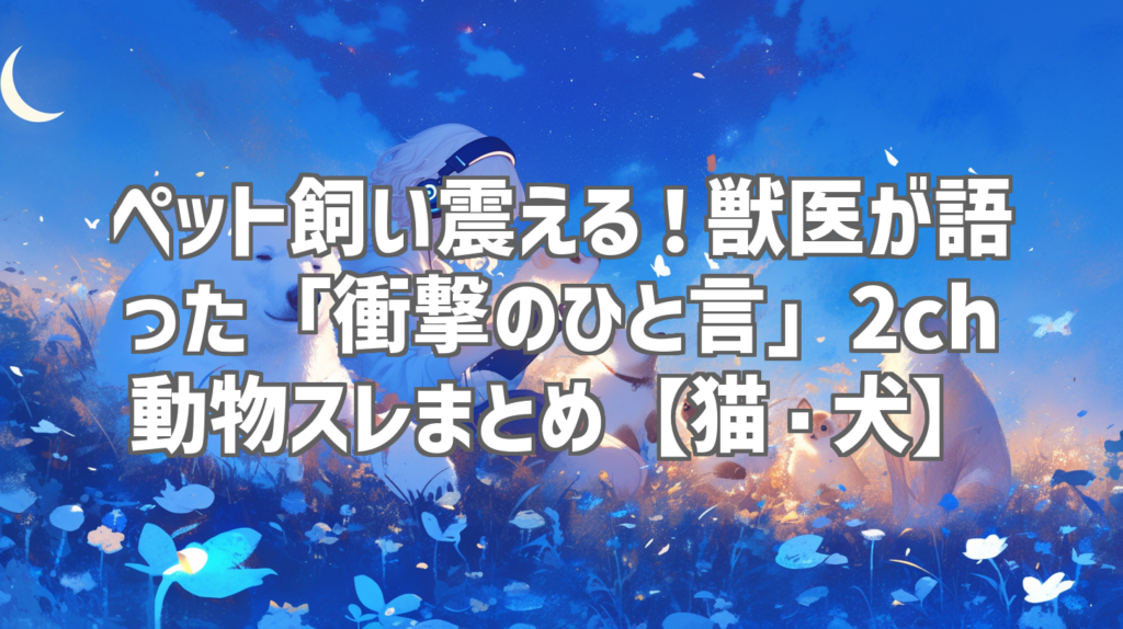 ペット飼い震える!獣医が語った「衝撃のひと言」2ch動物スレまとめ【猫・犬】 こんにちは!人気YouTubeレビューブロガーの[あなたの名前]です。今日は、愛するペットとの暮らしの中で、誰もが一度は経験するかもしれない「獣医さんとの忘れられない会話」... -