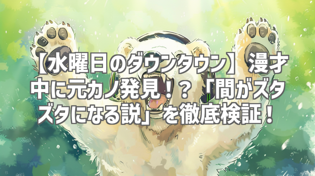 【水曜日のダウンタウン】漫才中に元カノ発見!?「間がズタズタになる説」を徹底検証! 皆さん、こんにちは!YouTubeレビューブロガーの[あなたの名前/ブログ名]です。今回は、巷で話題沸騰中の伝説的バラエティ番組「水曜日のダウンタウン」から、まさに...