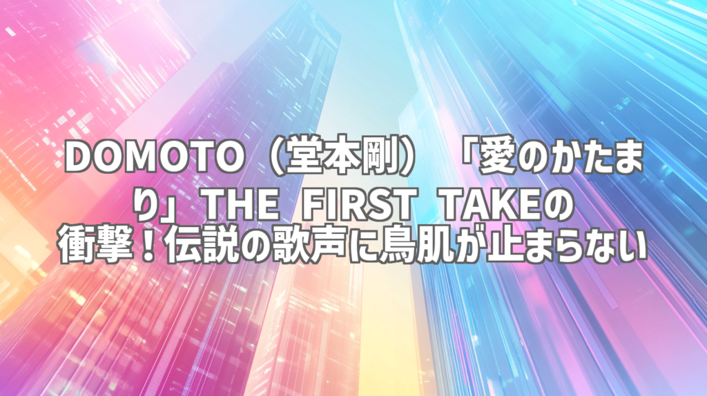 DOMOTO(堂本剛)「愛のかたまり」THE FIRST TAKEの衝撃!伝説の歌声に鳥肌が止まらない どうも、YouTubeレビューブロガーの〇〇です!今日は、僕が最近観て、もうとんでもなく鳥肌が立ちまくった伝説級の動画をご紹介します。それは、国民的アーティストD... -