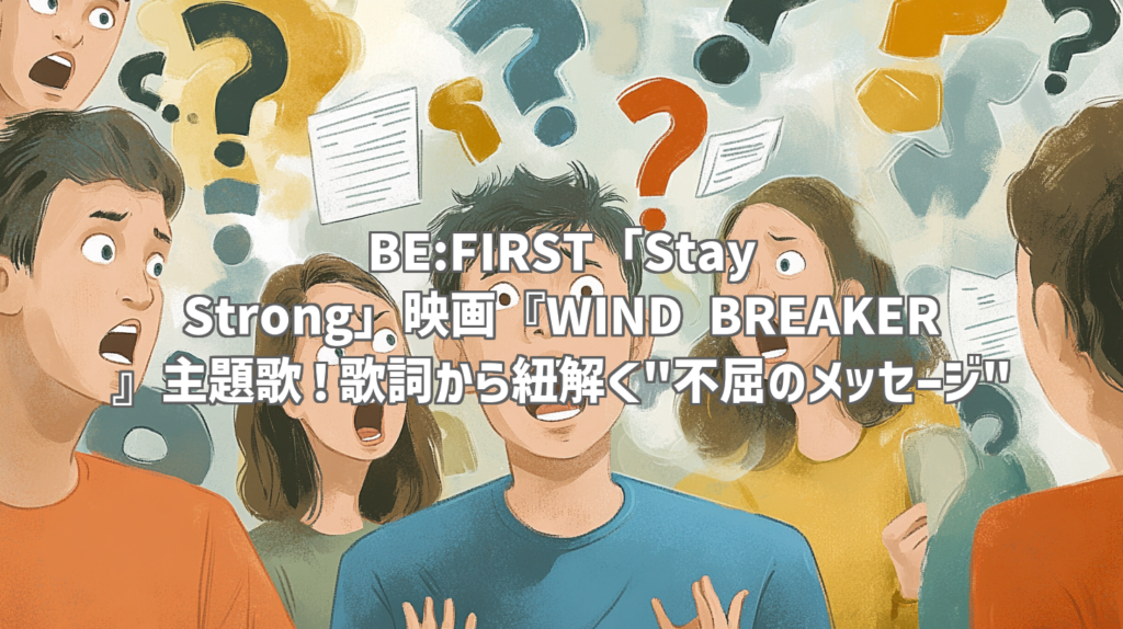 BE:FIRST「Stay Strong」映画『WIND BREAKER』主題歌!歌詞から紐解く"不屈のメッセージ" 皆さん、こんにちは!YouTubeレビューブロガーの〇〇です。今回ご紹介するのは、今最も勢いのあるボーイズグループ、BE:FIRSTの最新曲「Stay Strong」のリリックビ... -