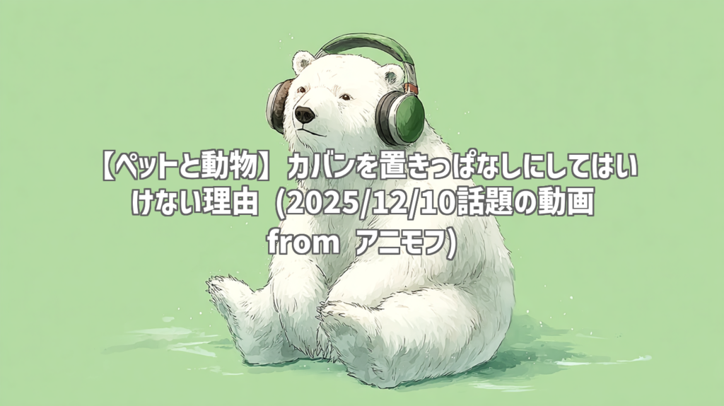 【ペットと動物】カバンを置きっぱなしにしてはいけない理由 (2025/12/10話題の動画 from アニモフ) 動画: カバンを置きっぱなしにしてはいけない理由 (YouTubeより) 動画情報 チャンネル: アニモフ 公開日: 2025年12月06日 再生回数: 約902,591回 動画の... -