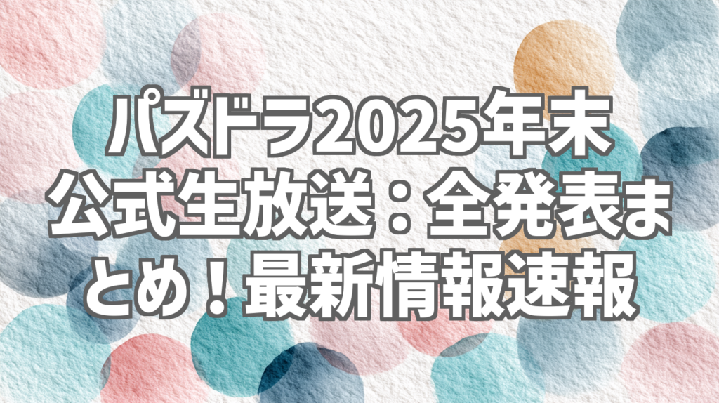 パズドラ2025年末公式生放送:全発表まとめ!最新情報速報 パズドラユーザーの皆さん、そしてゲームファンの皆さん、こんにちは!年末の一大イベントといえば、やっぱりこれですよね!2025年12月14日に配信された「パズドラ公式放送 ~2025 年末生放送~」... -