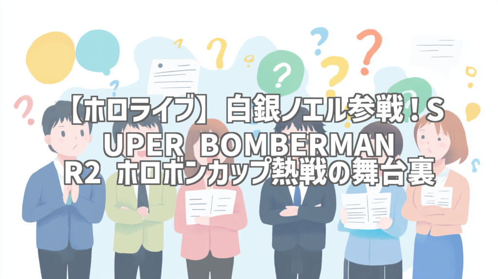 【ホロライブ】白銀ノエル参戦!SUPER BOMBERMAN R2 ホロボンカップ熱戦の舞台裏 ホロライブファン、そしてゲーム好きの皆さん、注目です!今回は、我らが騎士団長、白銀ノエルさんのチャンネルで繰り広げられた、まさに伝説級のイベント「SUPER BOMBERMAN... -
