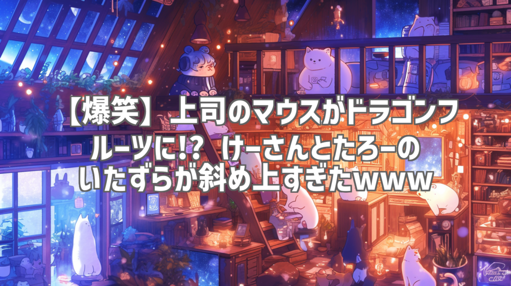 【爆笑】上司のマウスがドラゴンフルーツに!? けーさんとたろーのいたずらが斜め上すぎたwww 最近、YouTubeで話題沸騰中の「けーさんとたろー」さんの動画をご存知ですか? 今回は、その中でも特に笑撃的だった「上司のマウスをドラゴンフルーツに変えまし... -