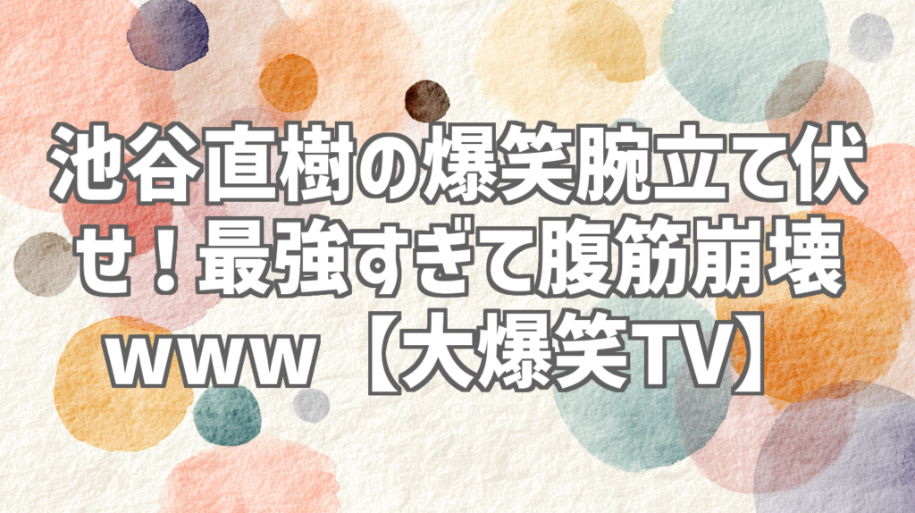 池谷直樹の爆笑腕立て伏せ!最強すぎて腹筋崩壊www【大爆笑TV】 池谷直樹さんといえば、誰もが知るスポーツ界のレジェンド。その身体能力の高さは、もはや人間離れしていると言っても過言ではありません。そんな池谷さんが、まさかの「大爆笑TV」に登場し... -