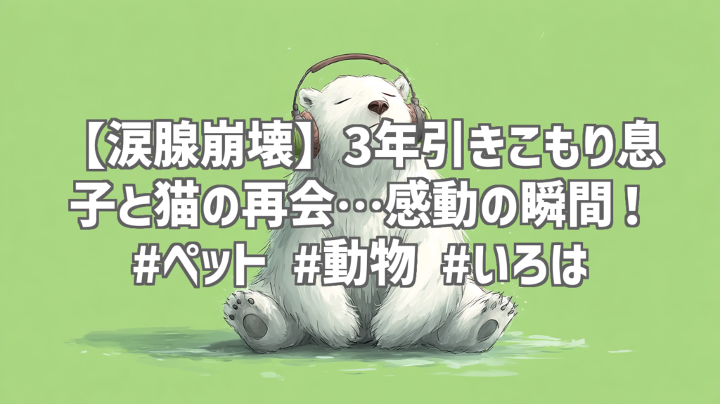 【涙腺崩壊】3年引きこもり息子と猫の再会…感動の瞬間! #ペット #動物 #いろは たった16秒の動画なのに、気づけば涙が止まらない…。今回ご紹介するのは、YouTubeチャンネル「いろは」さんが公開した「3年ぶりに部屋から出てきた引きこもりの息子と感動の... -