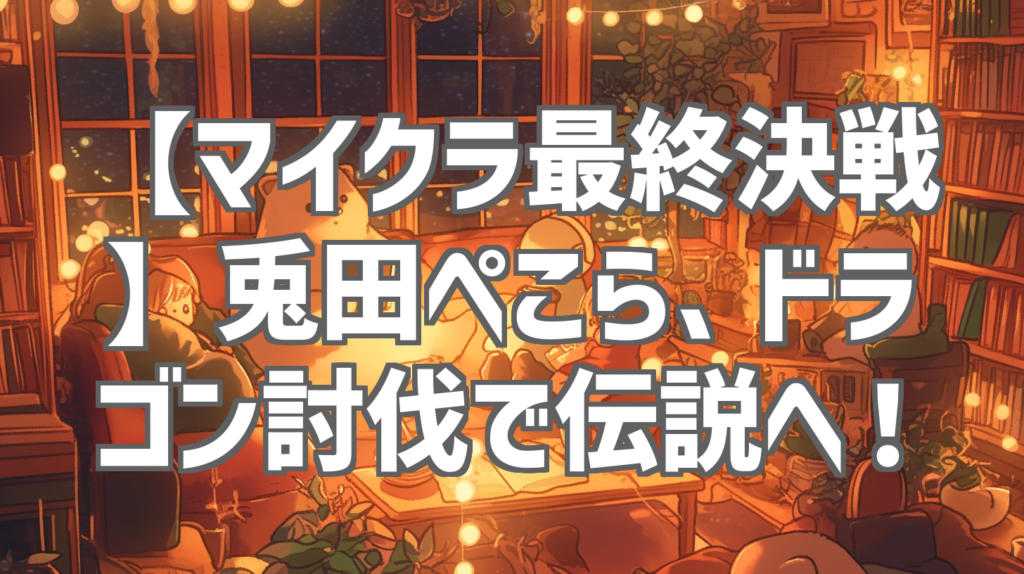 【マイクラ最終決戦】兎田ぺこら、ドラゴン討伐で伝説へ! 兎田ぺこらが、長きに渡る「ホロドラゴンマイクラ」企画の最終日、ついにラスボスであるドラゴン討伐に挑みました! 約6時間にも及ぶ激闘の末、見事ドラゴンを討伐し、多くのファンに感動と興奮を... -