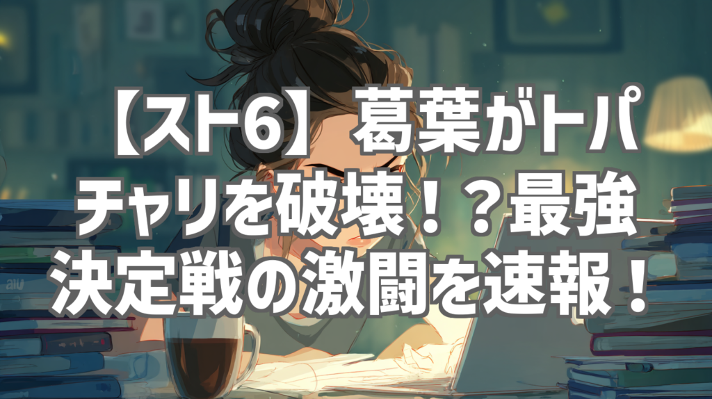 【スト6】葛葉がトパチャリを破壊!?最強決定戦の激闘を速報! 格闘ゲーム界隈を熱狂させている「ストリートファイター6」、通称スト6。その中でも、人気VTuber葛葉さんが参加した、とんでもない激戦が繰り広げられた動画が話題沸騰中です! その名も「ト... -