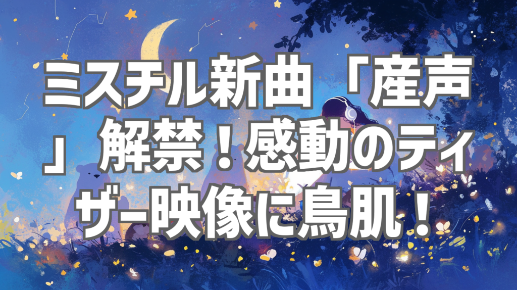 ミスチル新曲「産声」解禁!感動のティザー映像に鳥肌! ついに来た!Mr.Childrenの新曲「産声」のティザー映像が公開されました!57秒という短い映像ながら、その圧倒的な世界観と、桜井さんの歌声に、公開直後から鳥肌が止まりません。SNSでも「感動した... -