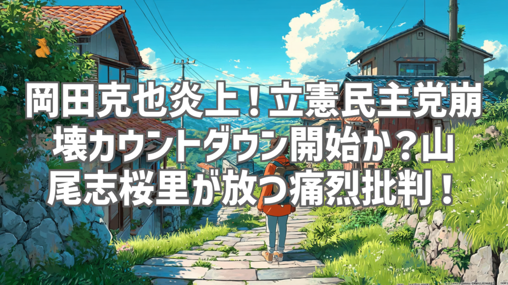 岡田克也炎上!立憲民主党崩壊カウントダウン開始か?山尾志桜里が放つ痛烈批判! 最近、ニュースをチェックしていると、「岡田克也」「炎上」「立憲民主党」というキーワードが目に飛び込んでくることが多くなりました。いったい何が起こっているのか? ... -