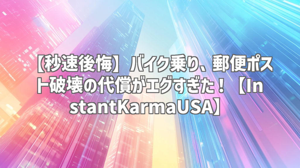 【秒速後悔】バイク乗り、郵便ポスト破壊の代償がエグすぎた!【InstantKarmaUSA】 いやー、これはマジでスカッとした!YouTubeチャンネル「InstantKarmaUSA」で見つけた、たった16秒の動画なんだけど、内容が濃すぎる!バイクに乗った迷惑者が、郵便ポス... -