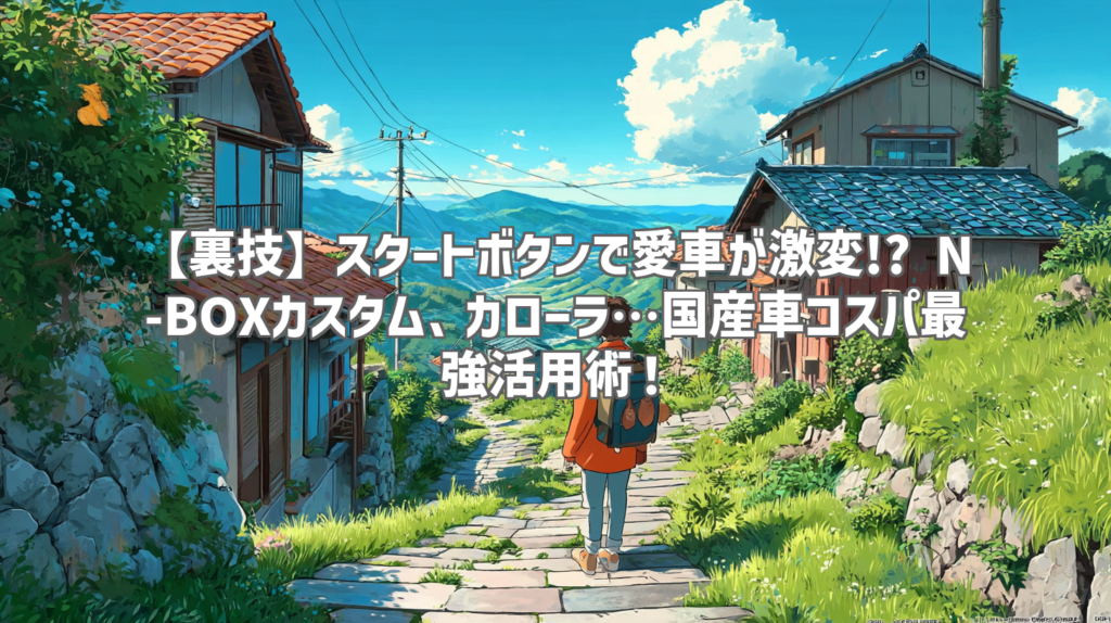 【裏技】スタートボタンで愛車が激変!? N-BOXカスタム、カローラ…国産車コスパ最強活用術! 「え、マジで?」思わず声に出してしまった。YouTubeで見つけた「ガレージストーリー」さんの動画。タイトルを見た瞬間から引き込まれ、「スタートボタンで愛車が... -