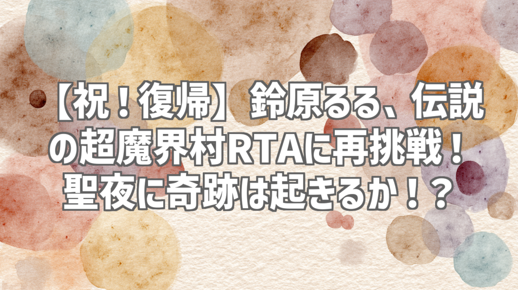 【祝!復帰】鈴原るる、伝説の超魔界村RTAに再挑戦!聖夜に奇跡は起きるか!? 聖なる夜に、あの伝説が再び!VTuber界隈を騒がせた鈴原るるさんが、待望の復帰後初ゲーム配信として、高難易度アクションゲーム「超魔界村」RTAに挑戦しました!以前にも挑戦... -
