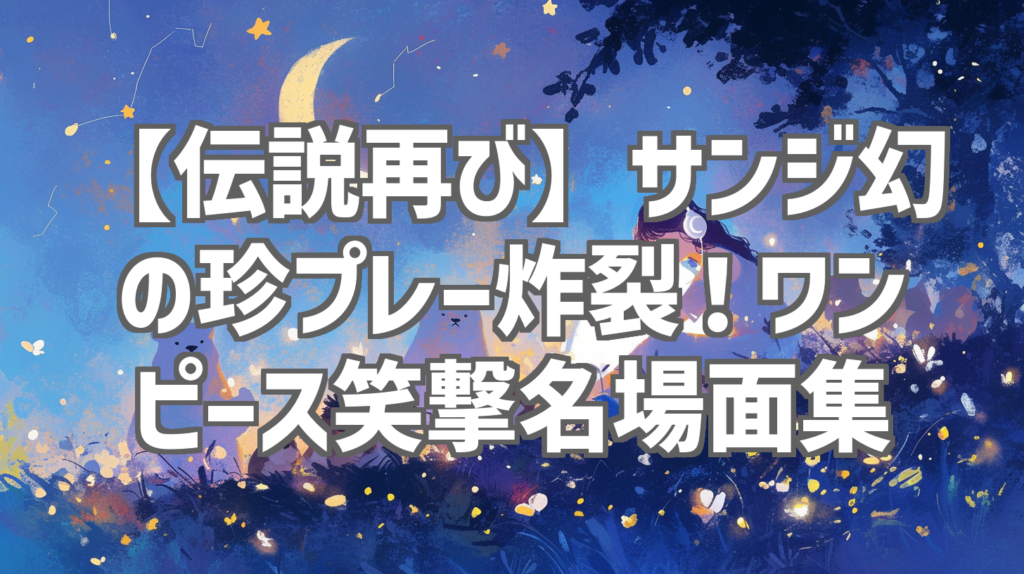 【伝説再び】サンジ幻の珍プレー炸裂!ワンピース笑撃名場面集 ワンピースファンなら絶対に見逃せない!今回は、YouTubeチャンネル「過去物語」さんがアップロードした「今では珍しいサンジの珍プレ一が面白いw」という動画を徹底レビューします。公開から... -