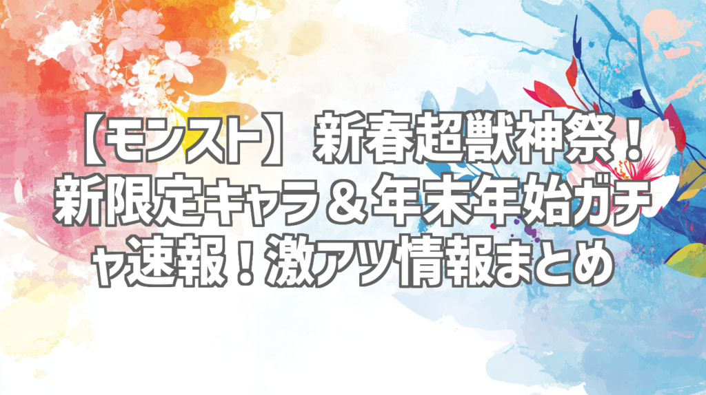 【モンスト】新春超獣神祭!新限定キャラ&年末年始ガチャ速報!激アツ情報まとめ いやー、今年も残すところあとわずか!モンストも年末年始に向けて、とんでもないキャンペーンをぶっ込んできましたね!今回のモンストニュースは、新春超獣神祭の新限定キ... -