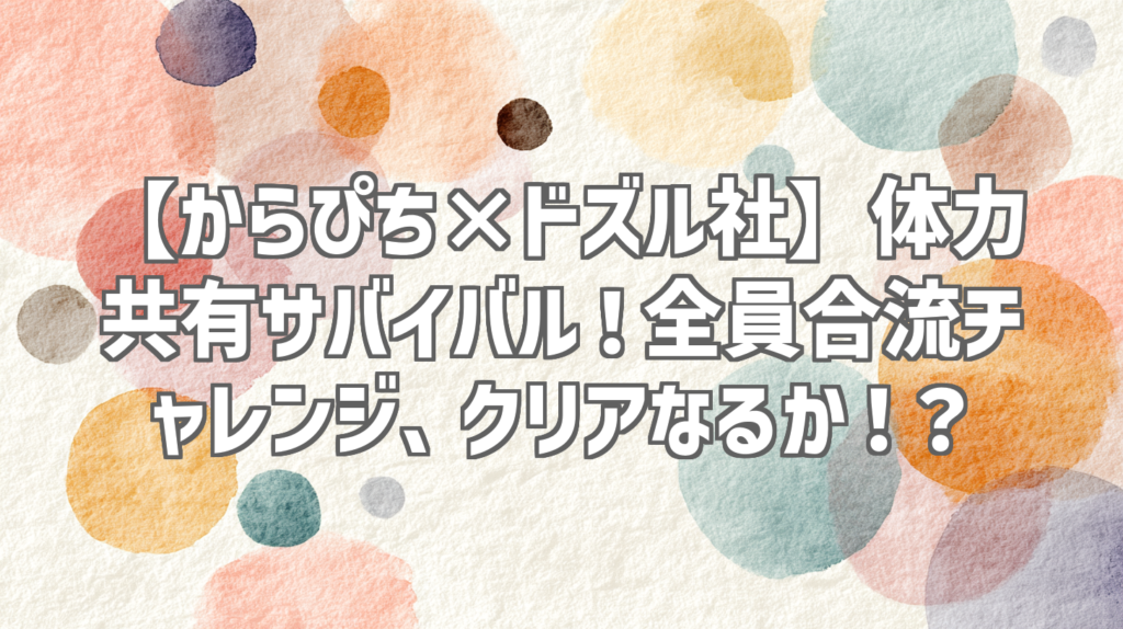 【からぴち×ドズル社】体力共有サバイバル!全員合流チャレンジ、クリアなるか!? 人気ゲーム実況グループ「ドズル社」と「カラフルピーチ(からぴち)」がコラボした、激アツの「体力と手持ちが共有の世界で全員合流するまで終われません!」動画が公開...