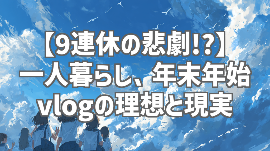 【9連休の悲劇!?】一人暮らし、年末年始vlogの理想と現実 年末年始、誰しもが心躍る長期休暇。特に一人暮らしを満喫している身としては、この期間をどう過ごすか、あれこれ計画を立てるのが楽しみですよね!今回ご紹介するのは、そんな期待を胸に9連休を迎... -