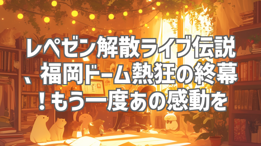 レペゼン解散ライブ伝説、福岡ドーム熱狂の終幕!もう一度あの感動を ついに、あの伝説の幕が閉じられた。レペゼンフォックス、改めRepezen Foxxの解散ライブ「レペゼン解散LIVE in みずほPayPayドーム福岡」。発表から当日まで、SNSを騒がせ続けたこのラ... -