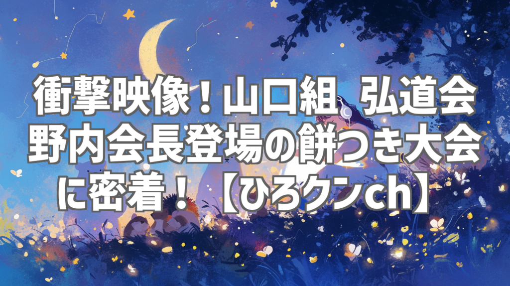 衝撃映像!山口組 弘道会 野内会長登場の餅つき大会に密着!【ひろクンch】 年末の風物詩といえば、餅つき。しかし、今回ご紹介する動画は、ただの餅つきではありません。「ひろクンch」が捉えたのは、なんと山口組弘道会の野内正博会長が登場する餅つき大...