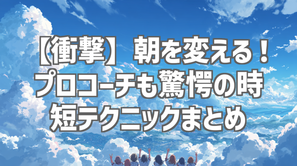 【衝撃】朝を変える!プロコーチも驚愕の時短テクニックまとめ 朝の時間は、その日一日のパフォーマンスを大きく左右すると言っても過言ではありません。しかし、多くの人が朝の準備に追われ、バタバタと一日をスタートさせているのではないでしょうか?今... -