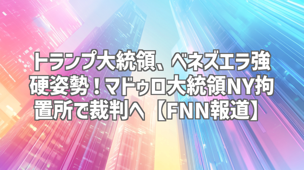 トランプ大統領、ベネズエラ強硬姿勢!マドゥロ大統領NY拘置所で裁判へ【FNN報道】 衝撃的なニュースが飛び込んできました!FNNプライムオンラインが報じたのは、トランプ大統領によるベネズエラへの大規模攻撃と、マドゥロ大統領の拘束という衝撃的な内容...