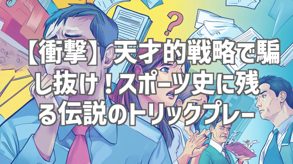 【衝撃】天才的戦略で騙し抜け!スポーツ史に残る伝説のトリックプレー スポーツの世界には、力と技だけでなく、知略と大胆な発想が勝利を左右することがあります。今回ご紹介するYouTube動画「天才的な戦略で全員を騙した男」は、まさにその好例。たった4...