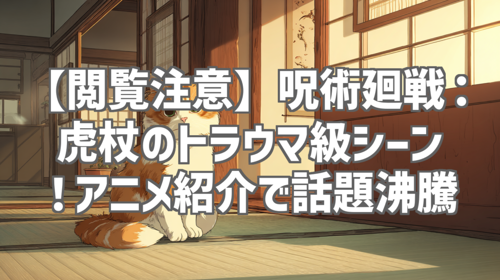 【閲覧注意】呪術廻戦:虎杖のトラウマ級シーン!アニメ紹介で話題沸騰 「呪術廻戦」ファンなら絶対に見逃せない!今回は、YouTubeチャンネル「最強お兄さん【アニメ紹介】」で公開されている、虎杖悠仁のトラウマ級シーンをまとめた動画をご紹介します。1... -