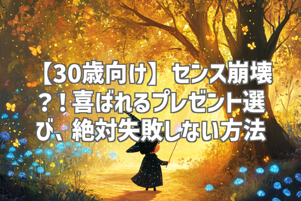 【30歳向け】センス崩壊?!喜ばれるプレゼント選び、絶対失敗しない方法 30代ともなると、プレゼント選びって本当に悩みますよね。若い頃のように「可愛い!」とか「カッコイイ!」だけで済まされない、相手のライフスタイルや好みを考慮する必要が出てく... -
