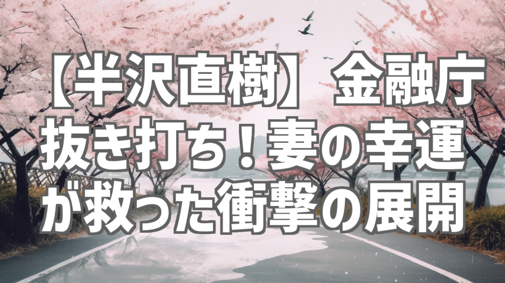 【半沢直樹】金融庁抜き打ち!妻の幸運が救った衝撃の展開 金融界の闇に立ち向かう半沢直樹の姿を描いた、あの名シーンがわずか1分に凝縮された動画がYouTubeで話題沸騰中です!金融庁の抜き打ち検査という、まさに息もつけない緊迫した状況下で、半沢を救... -