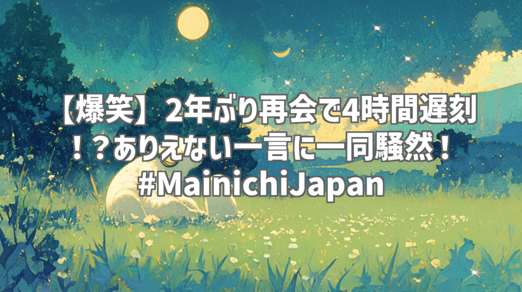 【爆笑】2年ぶり再会で4時間遅刻!?ありえない一言に一同騒然! #MainichiJapan いやー、マジで笑った!YouTubeを開いたら、おすすめに飛び込んできたのが「Mainichi Japan」さんのこの動画。タイトルからして既に面白い予感しかしなかったんだけど、実際... -