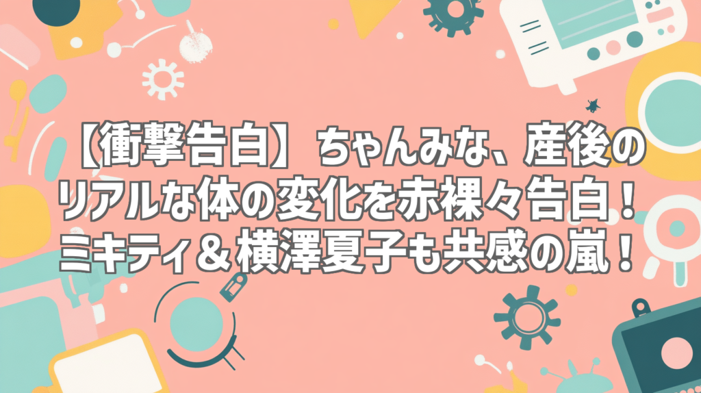 【衝撃告白】ちゃんみな、産後のリアルな体の変化を赤裸々告白!ミキティ&横澤夏子も共感の嵐! 産後の体の変化って、本当に人それぞれで、経験した人にしか分からないことばかりですよね。今回ご紹介するのは、人気アーティストのちゃんみなさんが、あの... -