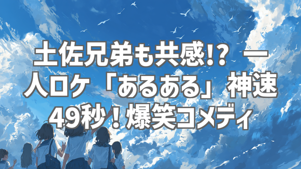 土佐兄弟も共感!? 一人ロケ「あるある」神速49秒!爆笑コメディ 一人ロケって、テレビで見る分には華やかだけど、実際は地味な作業の連続だったりしますよね。今回の動画は、土佐兄弟がそんな一人ロケの裏側を、わずか49秒に凝縮した爆笑必至のショートコ... -