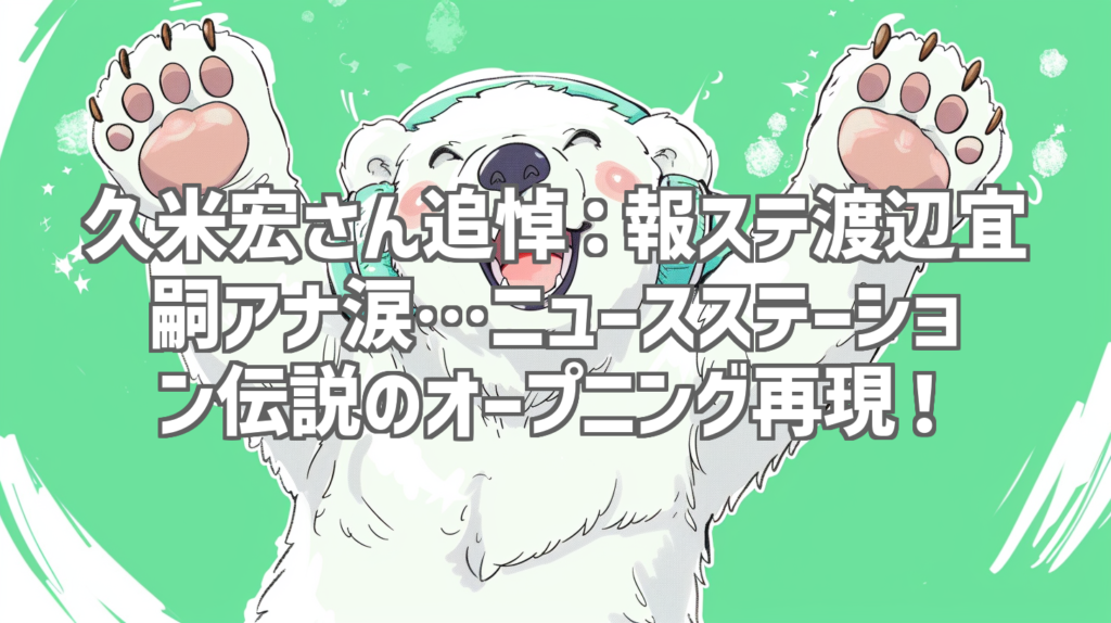久米宏さん追悼:報ステ渡辺宜嗣アナ涙…ニュースステーション伝説のオープニング再現! 久米宏さんの訃報を受け、多くの人がその功績を偲んでいます。特に、彼が長年キャスターを務めた「ニュースステーション」は、日本の報道番組のあり方を大きく変えた... -