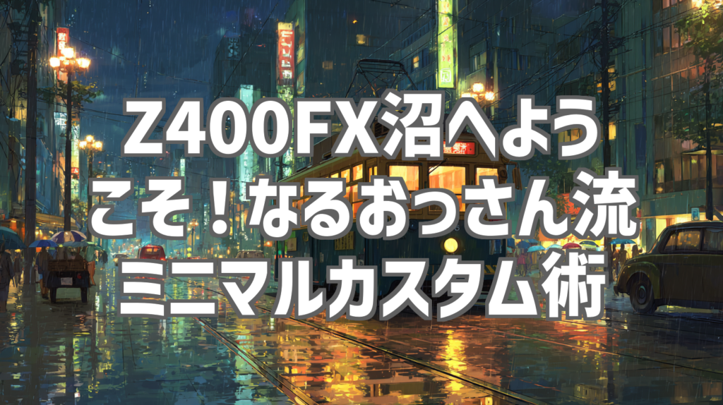 Z400FX沼へようこそ!なるおっさん流ミニマルカスタム術 バイク好きなら誰もが一度は憧れる名車、Z400FX。その美しいフォルムと、どこか懐かしいサウンドは、多くのライダーを魅了してやみません。今回ご紹介するのは、そんなZ400FXを、なるおっさんTVさん... -
